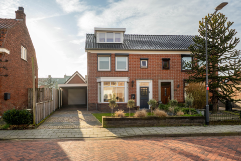 Luxe afgewerkte HOEKWONING met GARAGE, kunststof kozijnen met HR-beglazing, rolluiken en een royale oprit voor meerdere auto’s.